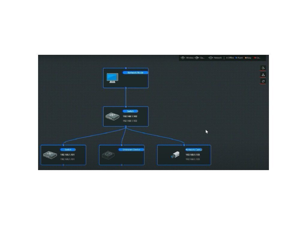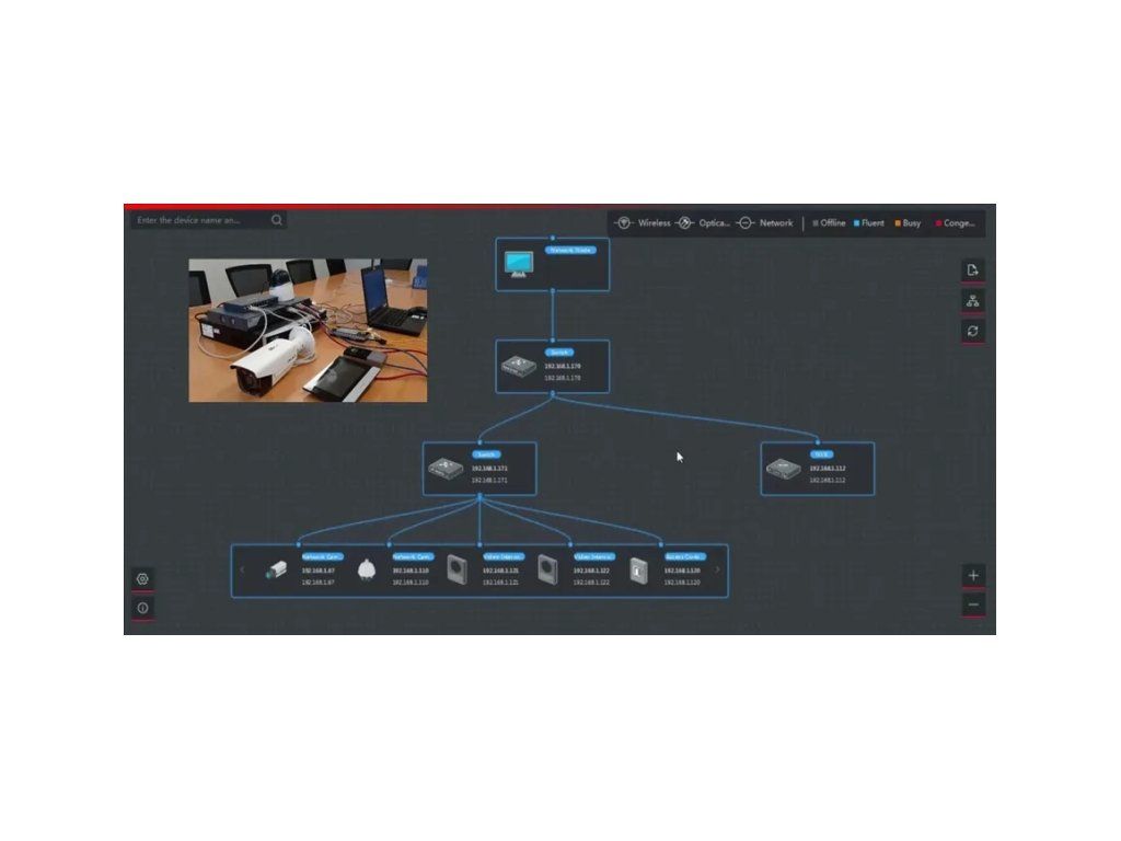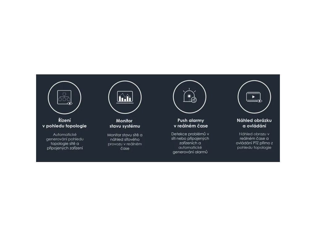 Switch umožňuje zobrazit topologii a stav sítě, dále přijímat alarmy zařízení v reálném čase, což výrazně snižuje náklady na síťový provoz a údržbu.