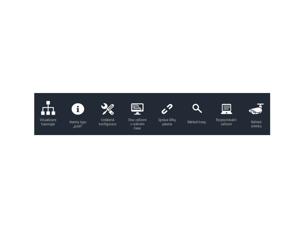 Switch umožňuje zobrazit topologii a stav sítě, dále přijímat alarmy zařízení v reálném čase, což výrazně snižuje náklady na síťový provoz a údržbu.