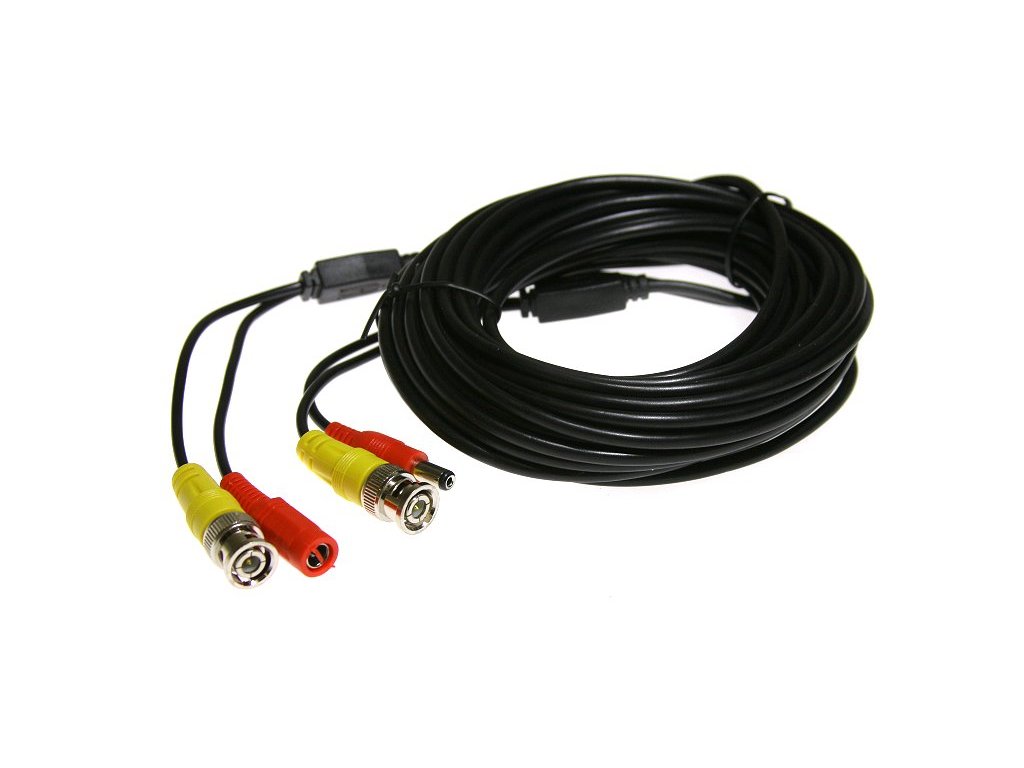 Koaxiální kabel s BNC koncovkami a DC napájecím kabelem v délce 15 metrů.