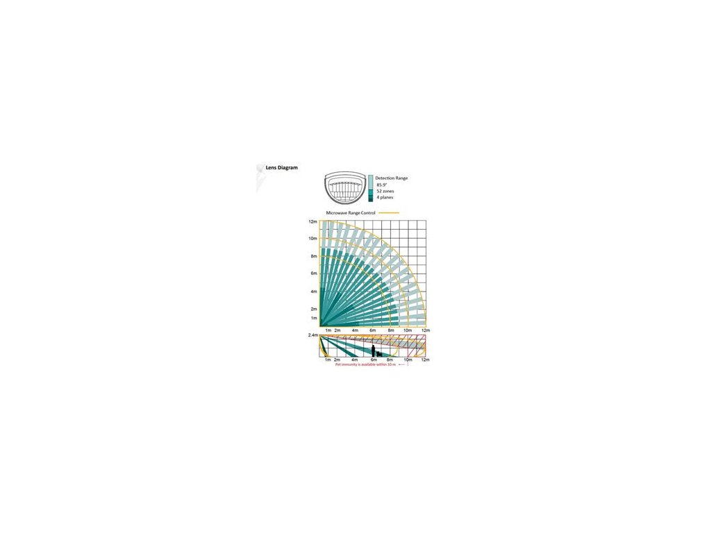 - LED indikace: Modrá - alarm, Zelená - PIR, Oranžová - MW