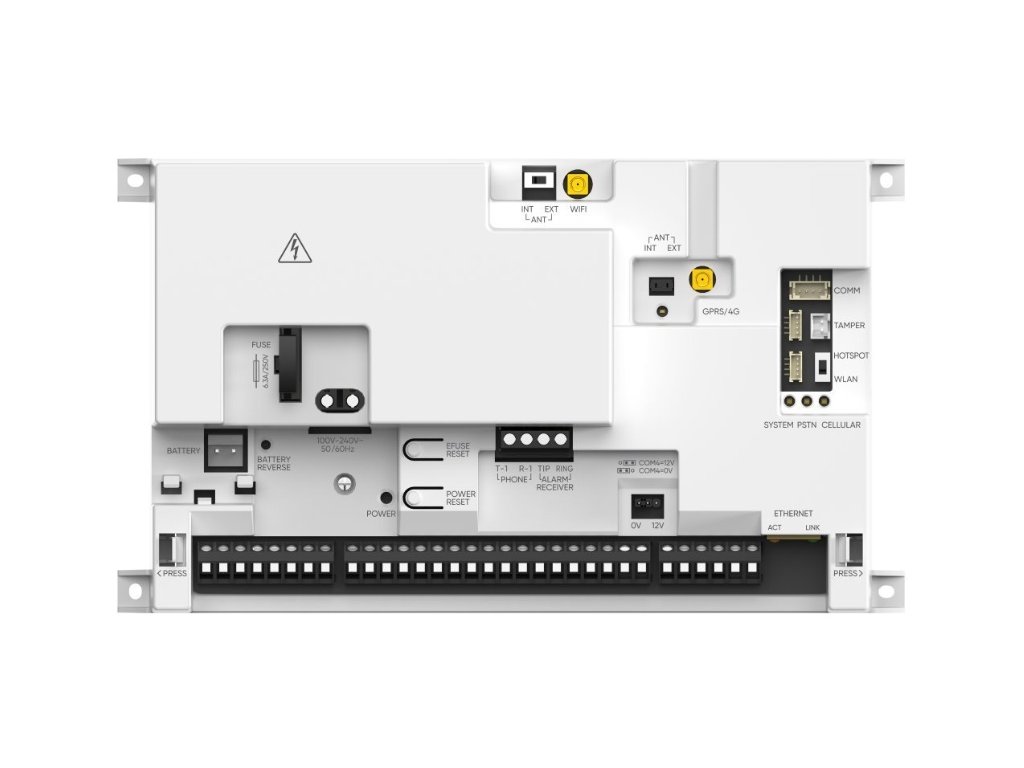 - Kapacita systému: 128 zón (sdílené mezi drátové a bezdrátové), 128 výstupů, 64 oblastí, 1 instalátor, 1 administrátor, 198 operátorů, 200 bezdrátových čipů, 200 bezdrátových klíčenek, 256 automatizačních scénářů, až 4950 logů (z toho 1000 v trvalé paměti)